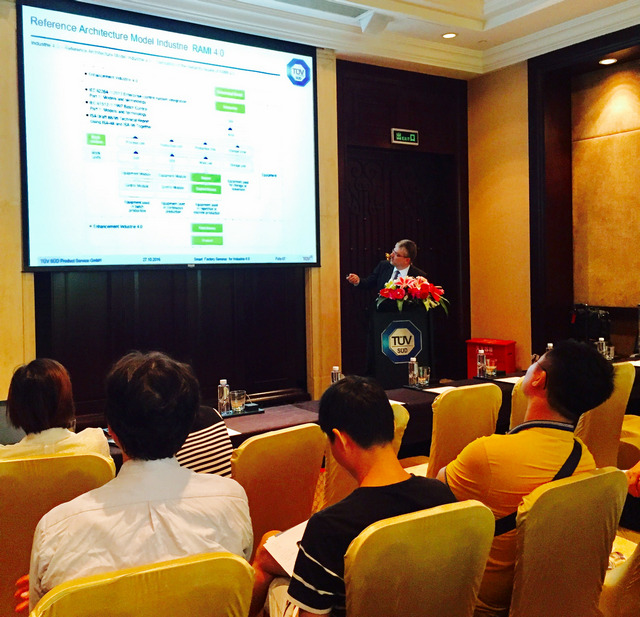 此次研讨会吸引了机器人研究机构、机器人协会、标准委员会、机器人制造商、设备制造商、汽车制造商、大型集成商等多家机构和企业的参与。在会议上,来自TUV SUD德国总部的工业和能源产品全球总裁Detlev Richter博士,高屋建瓴地系统阐述了工业4.0的发源与发展状况,勾勒了工业4.0 的表现形式,廓清了工业4.0的基本要素。Detlev Richter 博士提到:“虽然工业自动化已经成功实现整合一部分生产机器,但未能完全涵盖动态配置系统的所有方面,工厂中多数机器仍未实现互联,因此产品安全依旧被视为孤立的系统。实现智能工厂的过程,同样也是从无关联机器的世界转换到工业物联网世界的过程。”