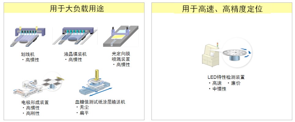 其中7F系列由于惯量小、高分辨、高精度、高速的特性在切割、张贴、溅镀、CVD、标签粘贴、IC和LED检测等装置上有着优异的表现,并且7F 具有同规格系列中尺寸小的优势。