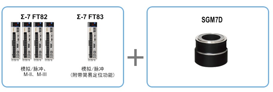 安川7D系列电机可配套Σ-7 FT82/83伺服单元驱动,通过模拟/脉冲或MII、MIII通讯方式更能充分发挥出其卓越性能和丰富功能。