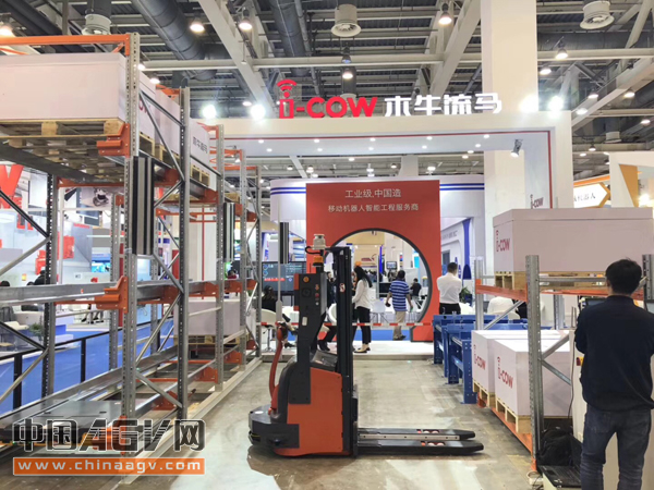 木牛流马是一家掌握激光导航AGV全部技术的高科技公司,同时也是按照欧洲安全标准标准化生产AGV产品的生产商。此次参与智博会,在非常局促的空间为客户呈现从一套智能生产仓储物流系统,其中涉及两种不同的解决方案:激光引导自动托盘堆垛AGV+辊筒输送系统;激光引导自动托盘堆垛AGV+穿梭车解决方案。目前移动机器人➕密集型存储的形式可广泛应用于食品、饮料、烟草等行业。