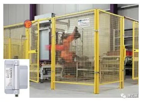 在机器人工作站中的防护门,如果需要隐蔽式的开关,可以加装施迈赛Schmersal安全铰链开关,大角度的开门,安装隐蔽,可以直接代替普通的门的和页,这些防护门需要关闭起来以确保操作安全。其基本特点是安全开关内部装有凸轮。根据EN 1088的要求,凸轮和操动件之间的肯定连接以及保护以防止随意改变结构得以实现。这提供给用户一定的成本优势,不需要额外安装专门的凸轮。