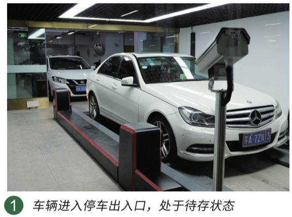 (1)车辆靠近出入口外,出入口外门自动打开,驾驶人员可以按引导屏及语音提示向前行驶,进入出入口内,当车辆到达限位后,系统提示车辆已经停好,驾驶人员即可熄火、拉手刹、下车。