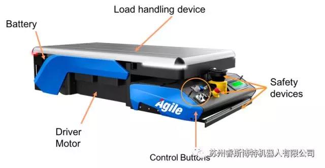 一般来说,AGV主要由安全装置(急停按纽、激光雷达、安全PLC、安全速度模块),控制装置、负载搬运装置、驱动装置,电池和电机等组成。其中,控制方面,包括功能控制(如指令解析、无线通信、导航数据处理、图像处理等)、动力控制(如电源、充电控制等)、安全控制(如障碍物检测、速度和转向控制等)。
