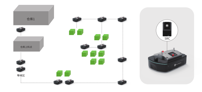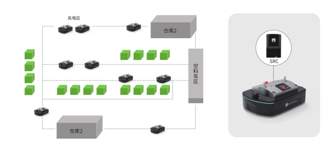 在某个项目中,仙知机器人通过基于SRC的潜伏牵引移动机器人及可视化管理系统RoboGlue、多机调度系统RoboRoute、可视化操作软件Roboshop等在内的整套解决方案,助力客户实现了仓库和生产区域运输自动化,大大降低了人力成本。