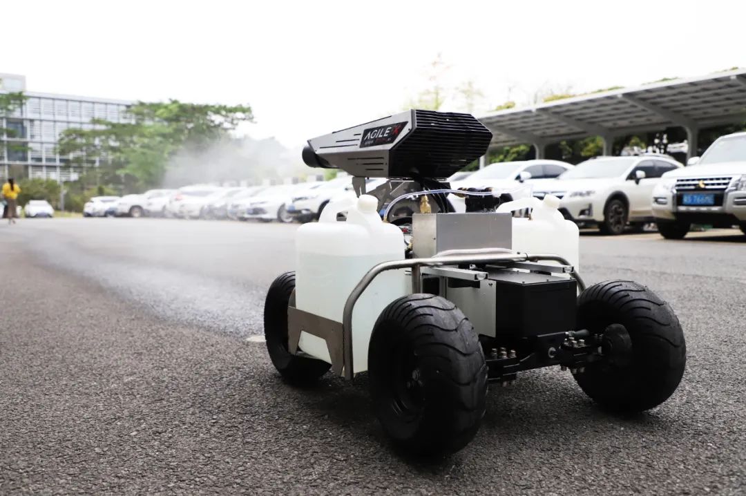 由松灵机器人(东莞)有限公司研发的该款“消毒机器人”搭载了“5G平行驾驶”系统可在水泥、柏油路面长时工作,30L大容量药壶,喷枪可旋转360度喷药,充分稀释气溶胶浓度,最高时速6公里每小时,可进入狭窄、有顶公共场所工作,实现消毒工作“轻松化”和“智能化”。