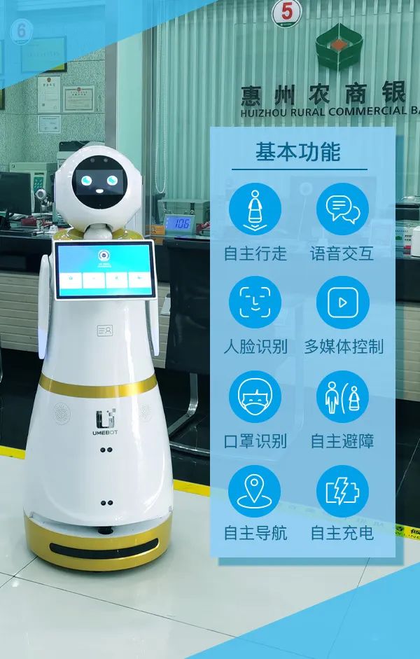 近日,去惠州农商银行办理业务的群众发现,在银行大厅里多了一位不同寻常的“大堂经理”,它能够给客户带路、业务指引,闲暇时能陪客户唠嗑、还能够唱歌跳舞。