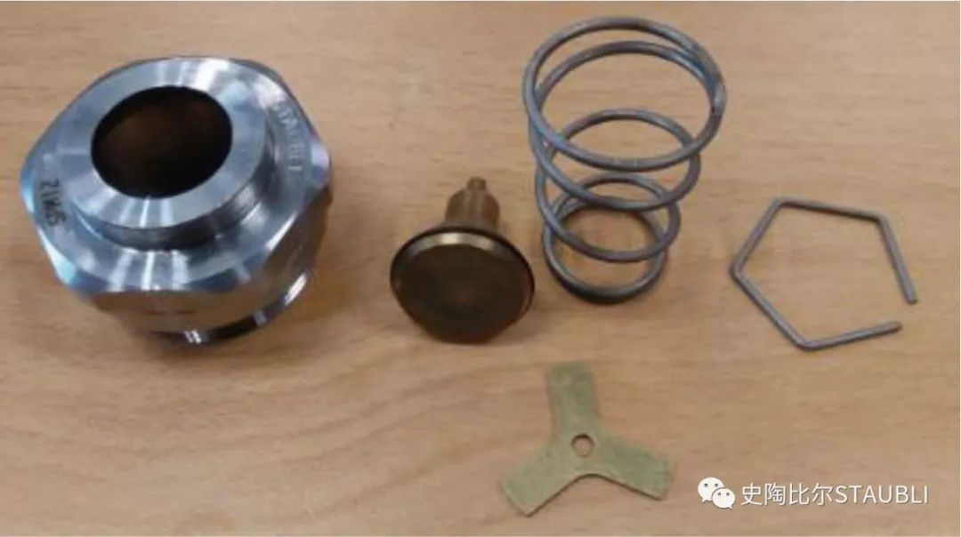 2. 依次取出卡环、挡片、弹簧和密封头。