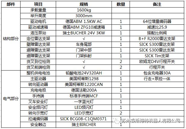 产品主要部件选用行业领先的产品驱动电机采用德国ABM原装进口的舵轮总成、搭配美国Curtis原装进口的行走泵控一体式驱动器,高度测量采用德国SICK原装进口的拉绳编码器。考虑到AGV的应用环境的特点,产品在货叉中间留有激光雷达的安装位置,可以在承载方向安装一个SICK S300安全雷达。由于在工作时候,滑架需要频繁起升下降,并且作为油压机械,维护保养的时候不可避免接触到油污,机型选用德国ESCHA和LEONI的PUR线材。