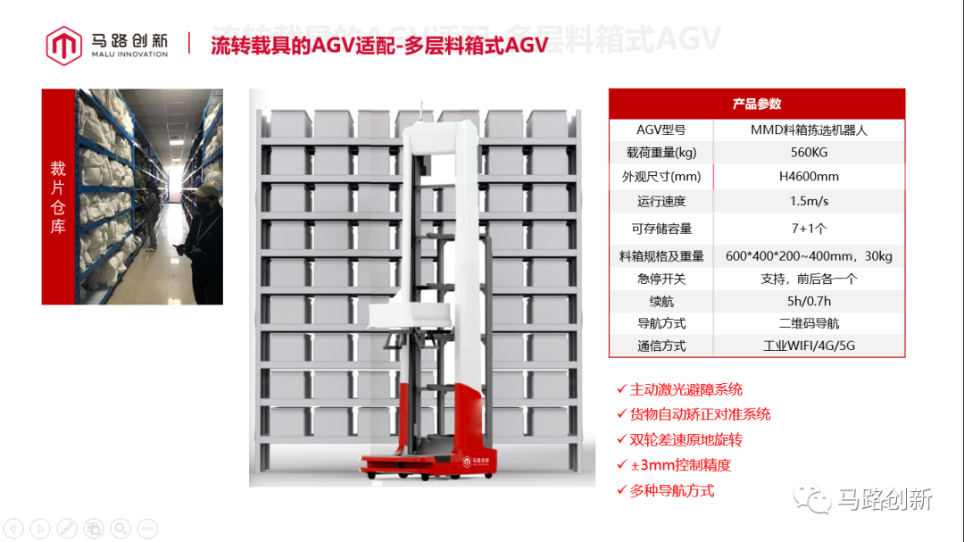 在仓库高度有限的情况下,裁片超市可以采用多层料箱式AGV,其性价比将远远高于传统使用的miniload系统;