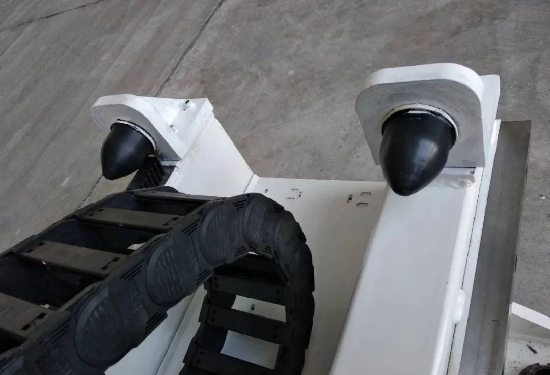 软件限位;行程开关限位;第七轴两端安装有防撞装置;轨道基础防护:风琴罩防护,钣金半封闭、全封闭防护:加强型拖链,保护机器人、控制柜等的连接线缆。
