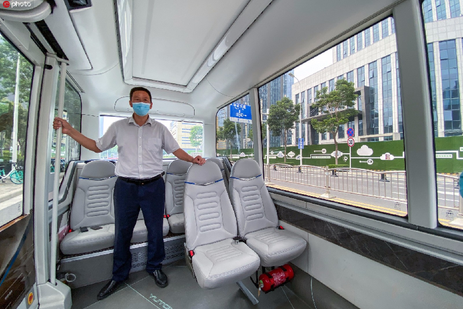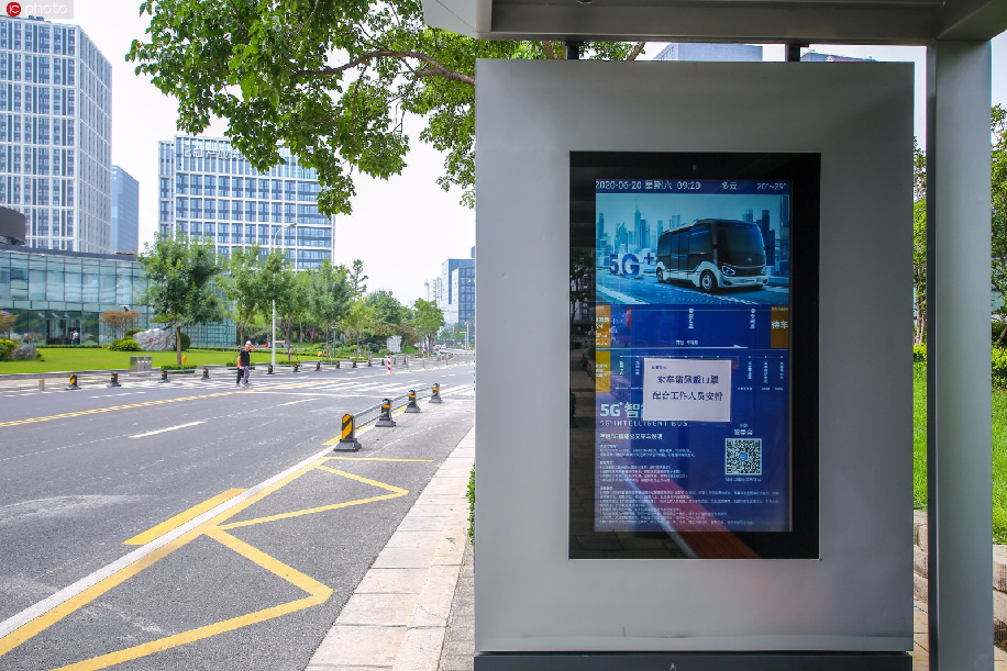 2020年7月23日,河南省郑州市,郑东新区龙子湖智慧岛的5G无人驾驶公交车试运行已超一年。运行以来,这条公交线路已安全行驶超3万公里,免费搭乘体验的市民超2万人次。