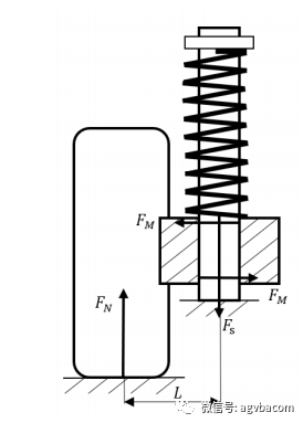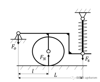 为保证所有轮子共同着地,应保证凸起压缩弹簧时,弹簧的弹力不会将AGV整体支承起来,则驱动轮与地面的作用力FN1"须满足: