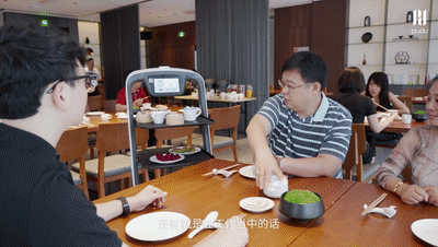#机器人“欢乐送”在膳道餐厅运送菜品