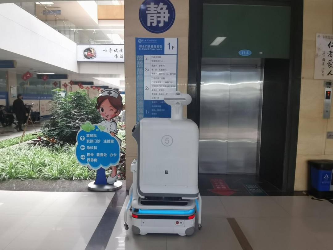 烛光机器人只要接到医生或护士的下单预约,就能准确无误地将药物、器械等送达,甚至还能自己乘坐电梯、开大门。