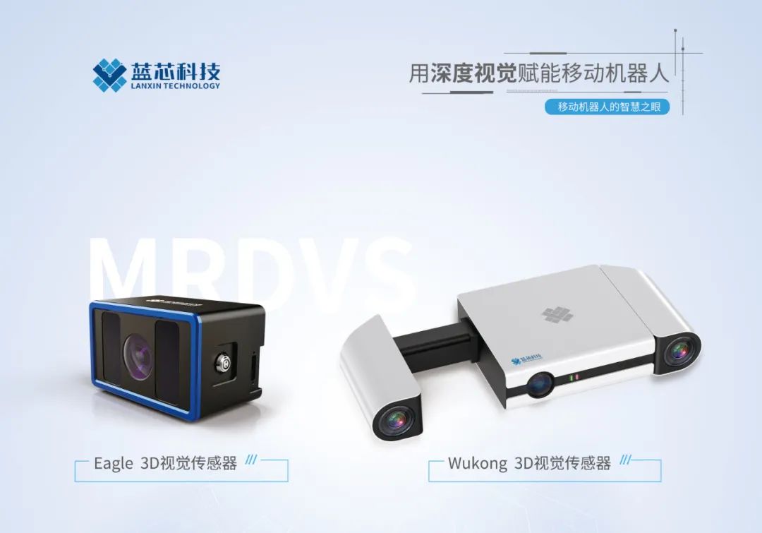 深度视觉产品——Eagle和WuKong是蓝芯科技今年新推出的两个系列产品。移动机器人搭载Eagle可采集环境三维空间信息,通过算法实现移动机器人无标识化室内导航,提高机器人避障性能,即“腿眼协同”。WuKong系列侧重与移动机器人的手臂(机械臂)“手眼协同”,实现对工作对象的精准操作,进而实现上下料、无序分拣和移动拣货等功能。
