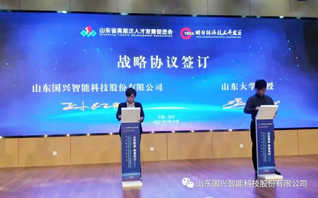 活动期间,山东国兴智能科技股份有限公司与山东大学教授李贻斌达成合作意向并签订战略协议。