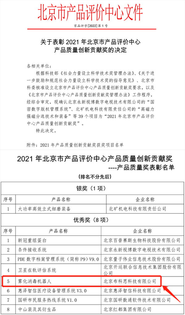 近日,北京市产品评价中心公布了《关于表彰2021年北京市产品评价中心产品质量创新贡献奖的决定》表单,该奖项是根据科技部重要文件精神(参见以文件截图),北京市科委核准设立,按照《北京市产品评价中心产品质量创新贡献奖管理办法》程序评选出。