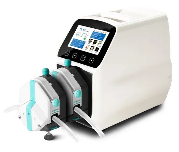 目前市场上的蠕动泵使用的电机种类有交流电机、直流电机、步进电机和伺服电机,精度也依次增高。在同等体积下,步进电机低速扭矩大,不需要减速箱,可靠性高,定位精准,性价比高,这是其它大部分电机都无法比拟的。