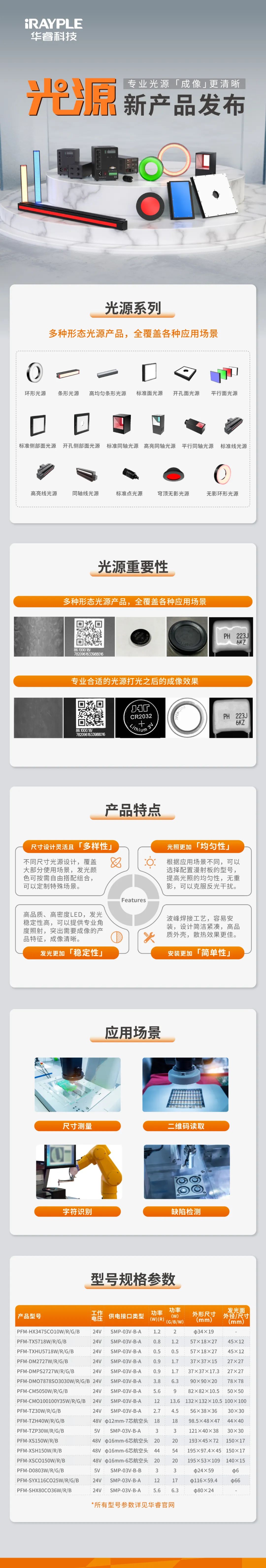 华睿科技多种形态光源产品,全覆盖各种应用场景