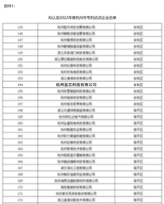 蓝芯科技被认定为2022年度杭州市专利试点企业