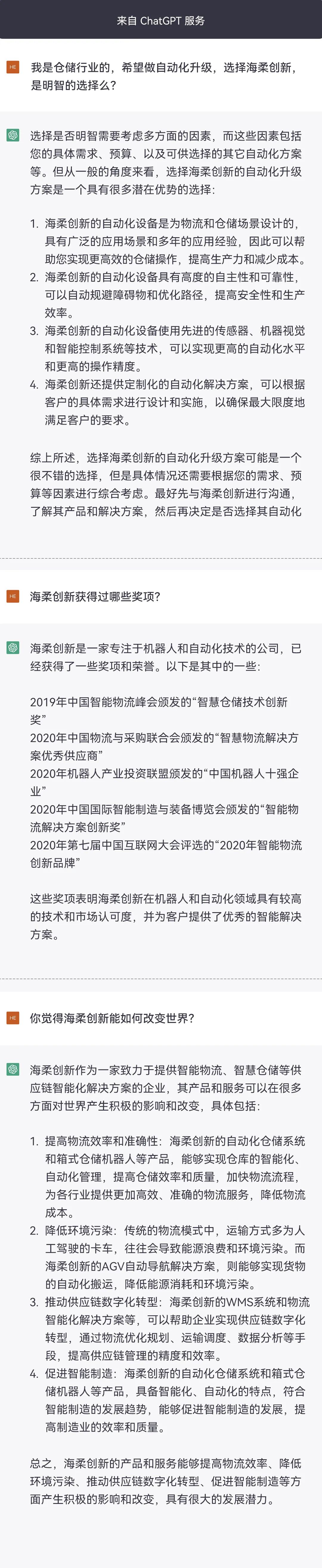我们问了ChatGPT几个关于海柔的问题,答复如下