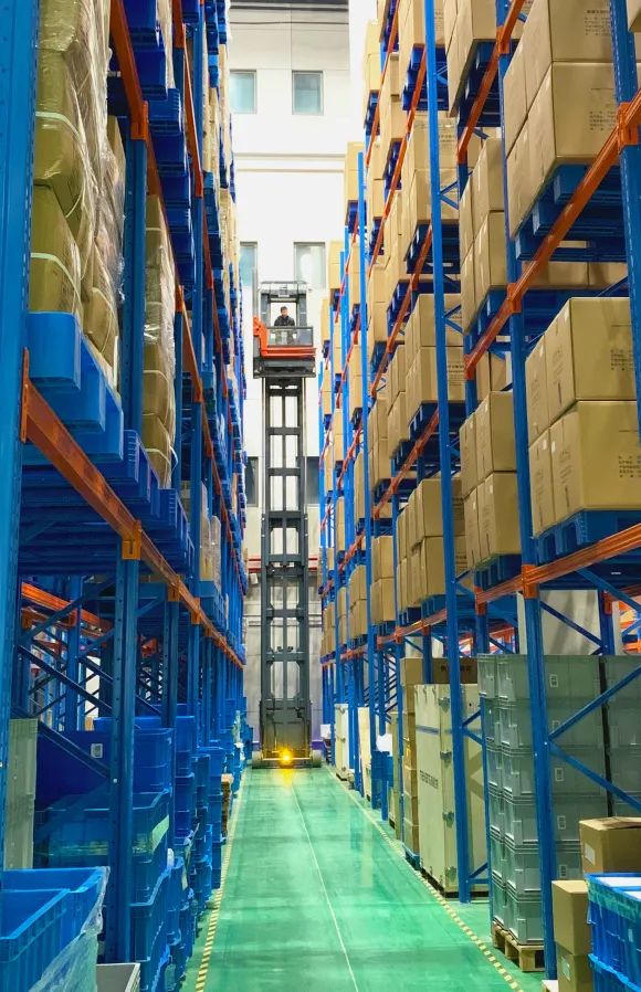“视野宽阔,是我们首选人上型三向叉车的原因。”生物技术公司经理说道。根据某生物技术行业需求专门定制米玛电动叉车——MCC1690正在巷道内进行堆垛。