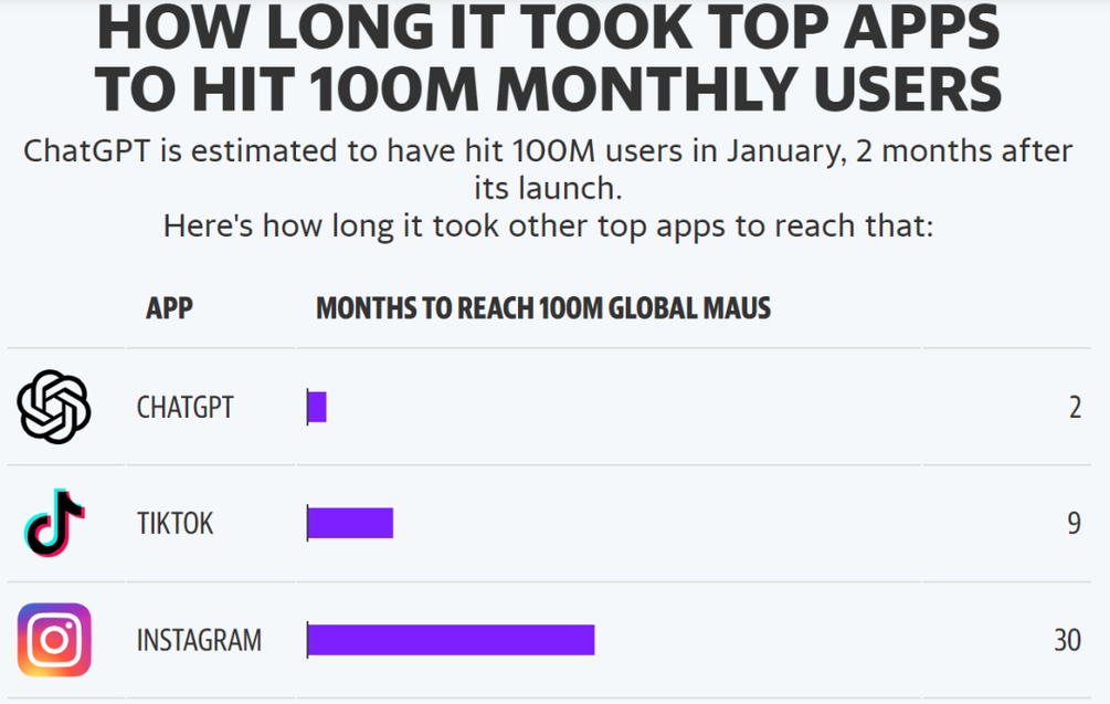 2022年12 月ChatGPT上线, 仅仅两个月后,ChatGPT月活用户突破1亿,刷新了增长到月活1亿用户的最短时长,成为史上用户增长速度最快的消费级应用程序。为何ChatGPT这么厉害,它的出现又会颠覆哪些传统认知?