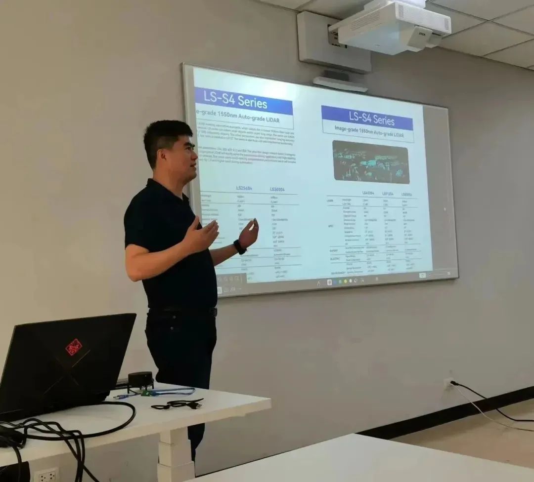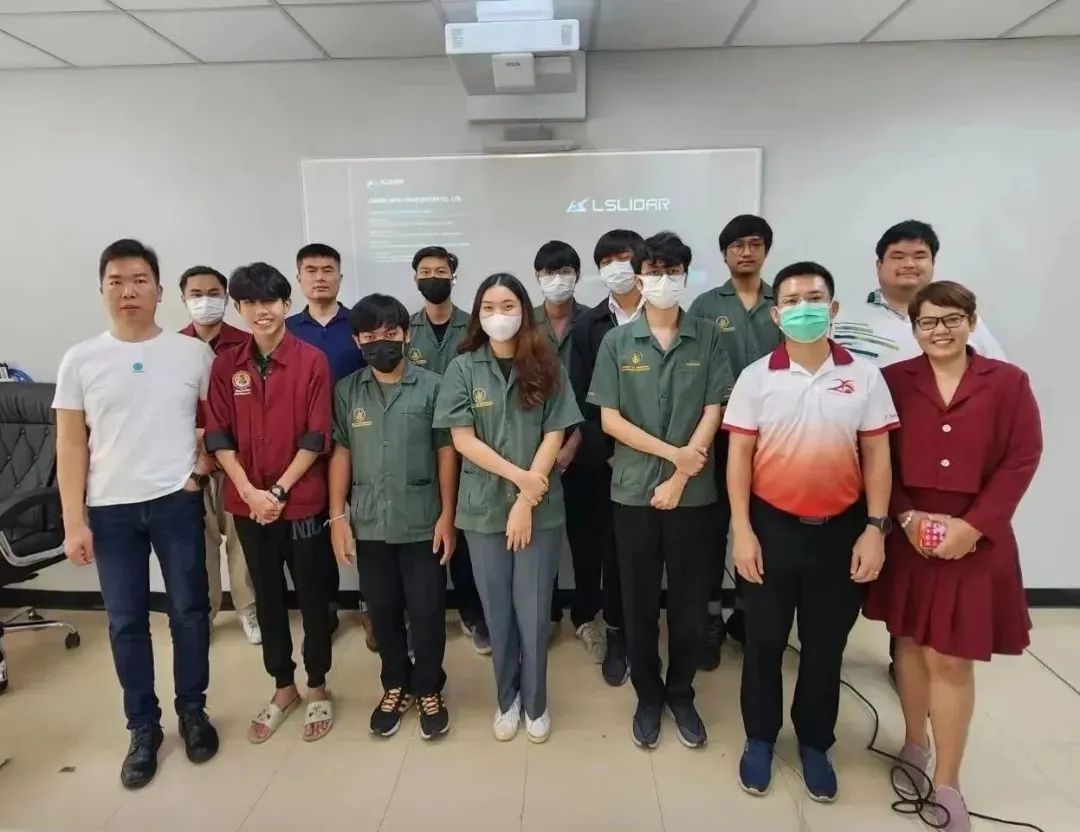 泰国农业大学是泰国农业领域的重点学府,也是研究工程自动化设备的重点院校。副总裁杨品桂先生,东南亚事业部总经理周志强先生分别为同学们详细介绍了镭神智能的企业实力,以及激光雷达如何赋能无人叉车、农业工程车辆等实现精准定位导航、自动化作业以及无人驾驶,帮助企业实现产业智能化、无人化升级与应用;并详细介绍了镭神智能自研自产的图像级1550nm光纤车规激光雷达LS系列在高阶无人驾驶领域应用的先进性与突破性;此外,周总还介绍了激光雷达在智慧交通、机器人、安防、航空、测绘等其他领域的应用,一同与学生们感受来自中国的激光雷达的3D环境感知魅力。