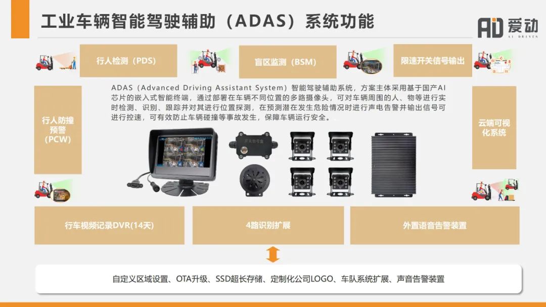爱动还将ADAS技术引用到工业生产现场,以实现对车辆行驶的实时监测、预警和控制,从而避免碰撞、提高操作准确性、减少人为失误,显著降低了工业车辆作业的安全风险,提高了工业生产的安全性和效率。而这一创新技术也在仓储物流、生产车间、港口码头等众多场景中得到了成功的应用,为企业的安全生产做出了积极贡献。