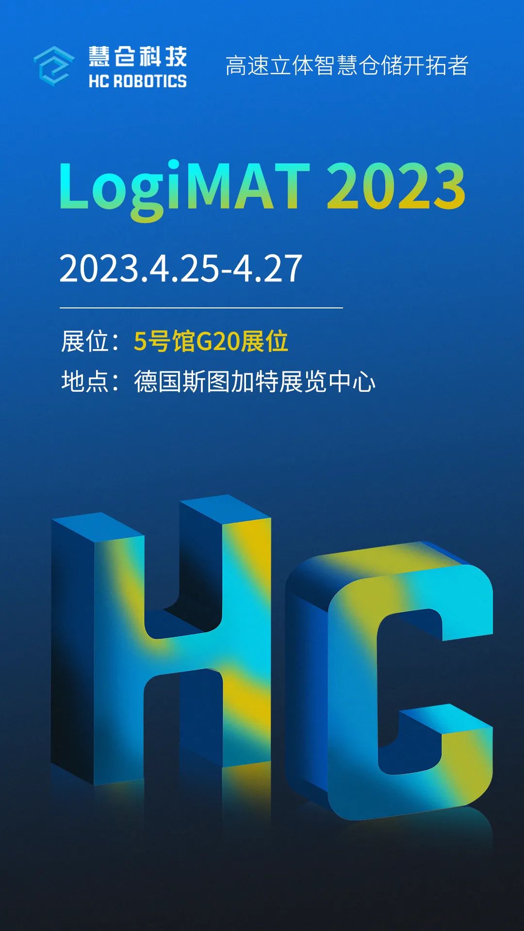 2023年4月25日-27日,LogiMAT Stuttgart内部物流解决方案及流程管理国际贸易展将在德国斯图加特展览中心盛大召开。高速立体智慧仓储开拓者慧仓科技(HC ROBOTICS)将集结超强阵容实力亮相!