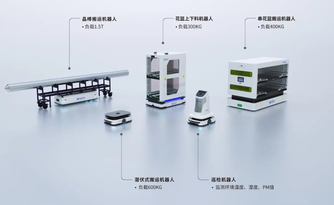 看蓝芯科技光伏机器人超强阵容:电池片花篮上下料机机器人、晶棒搬运机器人、潜伏式搬运机器人、清洁机器人、巡检机器人等集体亮相本届SNEC。