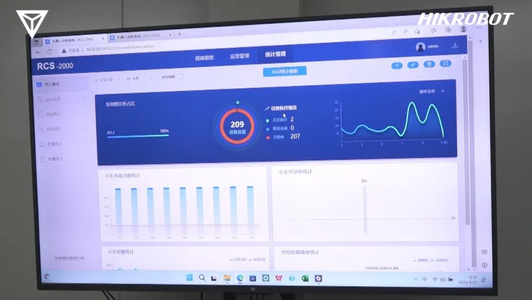 管理员可通过海康机器人RCS系统对AMR的运动路径、搬运任务进行合理规划,并对任务执行情况进行数据统计,使零部件和成品的出入库数量清晰可观,以便对仓库物料进行冷热度动态管理。
