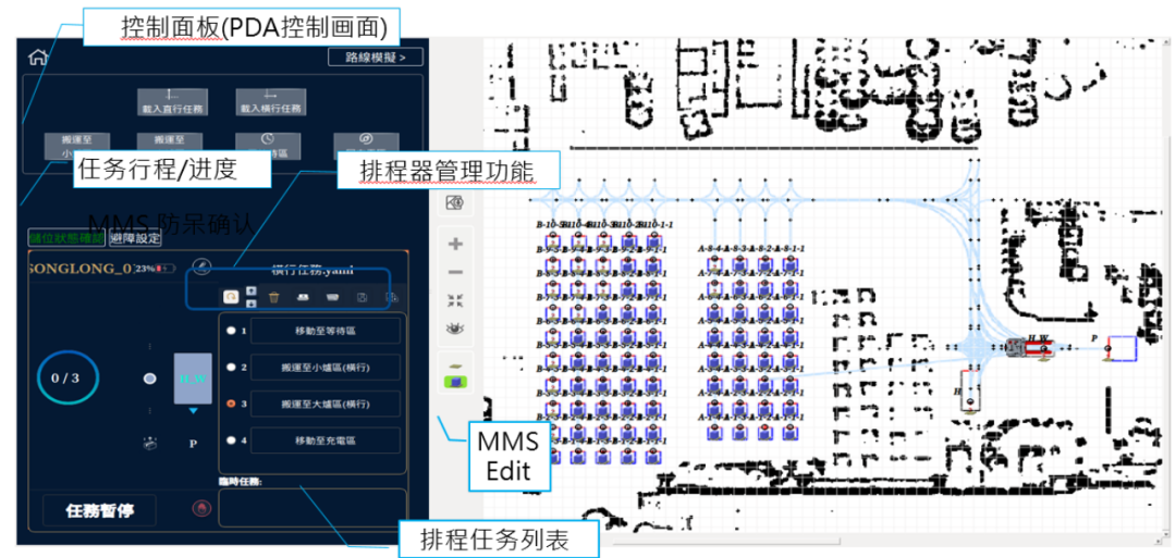 搭配智能化车俩调度系统,可以迅速完成多车在场域内优化路线设定 达到最高物流搬运效率