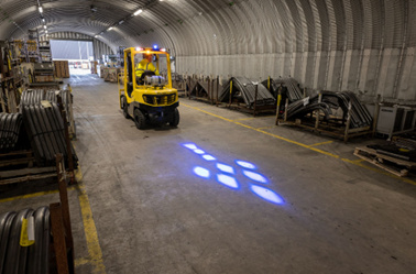 海斯特的叉车在设计上将驾驶员的注意力和视线可达性作为标准配置。从现在开始,海斯特叉车还将为驾驶员提供两种额外的解决方案。动态行人提醒系统适用于海斯特1.5至5.5吨的电动和内燃发动机叉车。在平衡重叉车的前部或后部,可以安装紧凑的蓝色LED灯。LED灯会在地面上投射出一条逐渐闪烁的蓝色箭头,该箭头清晰地指示了叉车驶来的方向和行驶的速度。这样,行人或其他车辆可以轻松看到叉车的位置。在一些工业仓库中,由于存在盲点、交叉通道、大量行人流动或繁多的卸货操作,正在使用的叉车的视线受到限制,因此这项功能可以有效提高安全性。