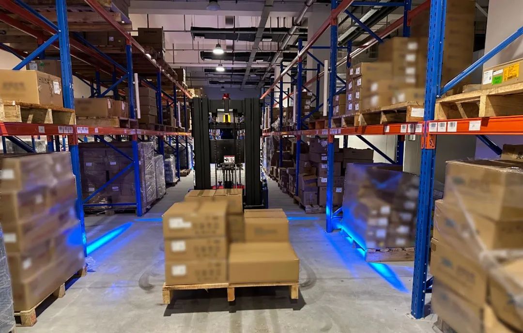 该项目投入覆盖面积达1.5万平,跨越3层楼层,涉及来料收货区、原料存储区、成品存储区,在仓库区布置了3层承载货架,货物通过电梯跨楼层转运。采用的智能物流系统解决方案包含:CDD16堆垛式无人叉车式AGV+CBD20无人叉车式AGV+CCS(AGV调度系统)+ACS(自动控制系统),对接用户WMS(仓储管理系统),与电梯进行交互,实现了多SKU的原料、成品仓库信息化管理,自动快速响应生产需求。