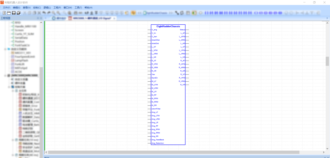 科聪为客户提供标准的多舵轮运动控制功能块,功能块内置算法,可以在“有起伏、有高低差、有污渍、有伸缩缝等”的各类工厂地面,在工厂、仓库的狭窄通道里,安全自动的完成如:入库、出库、转弯、转向等。内置的算法还考虑到货物摆放不均匀的颠簸、晃动等,达到应用的准确度、流畅度要求。