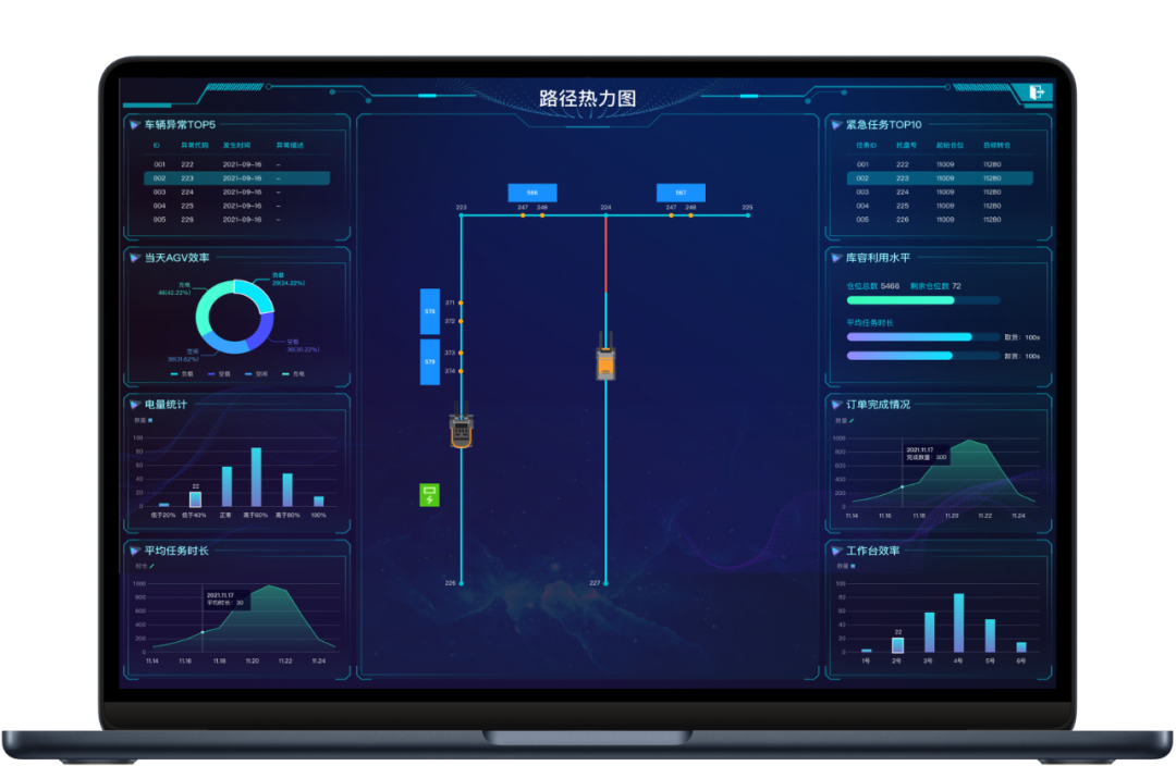 众仓自研RCS调度系统,通过虚拟模型还原真实现场,配合动态路径规划算法以及智能交通管制策略,完美实现无人叉车在项目中的最优路径规划、多车智能混合调度、自主避障等功能。同时,客户可通过系统界面查看任务信息、车辆状态、故障报警等关键信息,实时掌控作业动态,确保仓储物流作业高效执行。