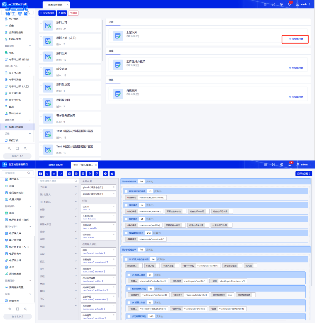 猎鹰任务除了支持逻辑控制、流程控制外,还支持循环、复杂变量、并发等高级功能;不仅可以进行简单的点对点搬运,还可以实现循环处理、并行处理、多点搬运、多车协作、系统交互、设备控制、库存仓储逻辑等。