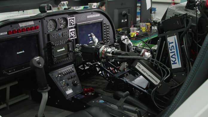 PIBOT 操作飞行模拟器。图片来源:韩国科学技术院