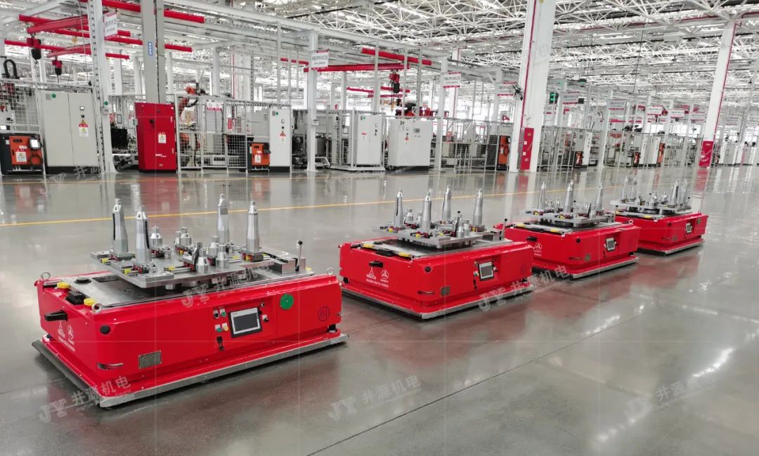 国内某柴油发动机工厂为了提升工作效率,实现自动化物料转运,在装配线及配料区采用了井源双向辊道输送式AGV和双向潜伏举升式AGV,在1套AGV调度系统下兼容两款AGV设备,实现多台设备合理调度,满足柴油发动机装配线上托盘返回输送及配料区零部件的转运工作,AGV均采用磁带导航模式,负载能力1000KG,满足客户300个工作日,10小时两班制生产,该项目不仅大大的提高了生产效率,还节省了项目设备的占用空间,降低了人力成本,使得车间设备管理更为合理,也为后续增产扩能提供了可能性。