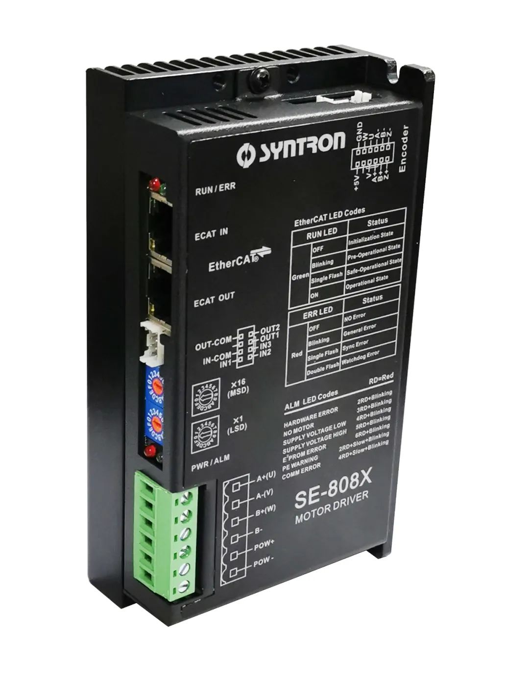 此次获奖产品SE-808X系列驱动器,是融合EtherCAT总线技术打造的高速总线型数字同步电机驱动产品,它支持COE协议,符合CiA402标准,总线传输速率可达100Mb/s,可实现步进/伺服系统/直流无刷系统的实时控制与实时数据传输,具有高性能、高传输速率、高可靠性通讯等优点。