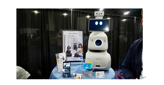 Ogmen Robotics 的 Oro 宠物陪伴机器人在 CES 2024 上展出。