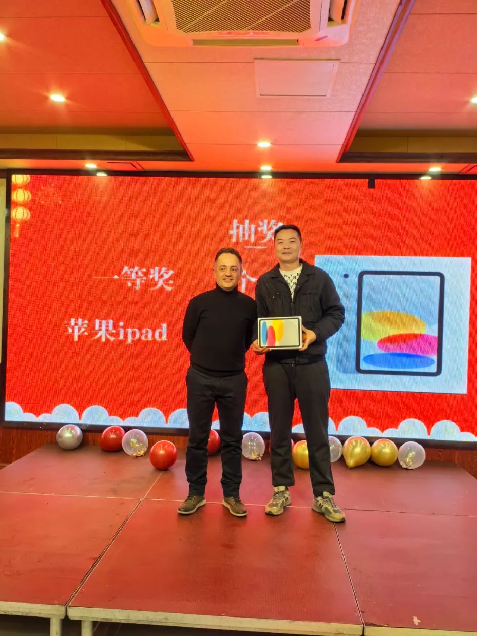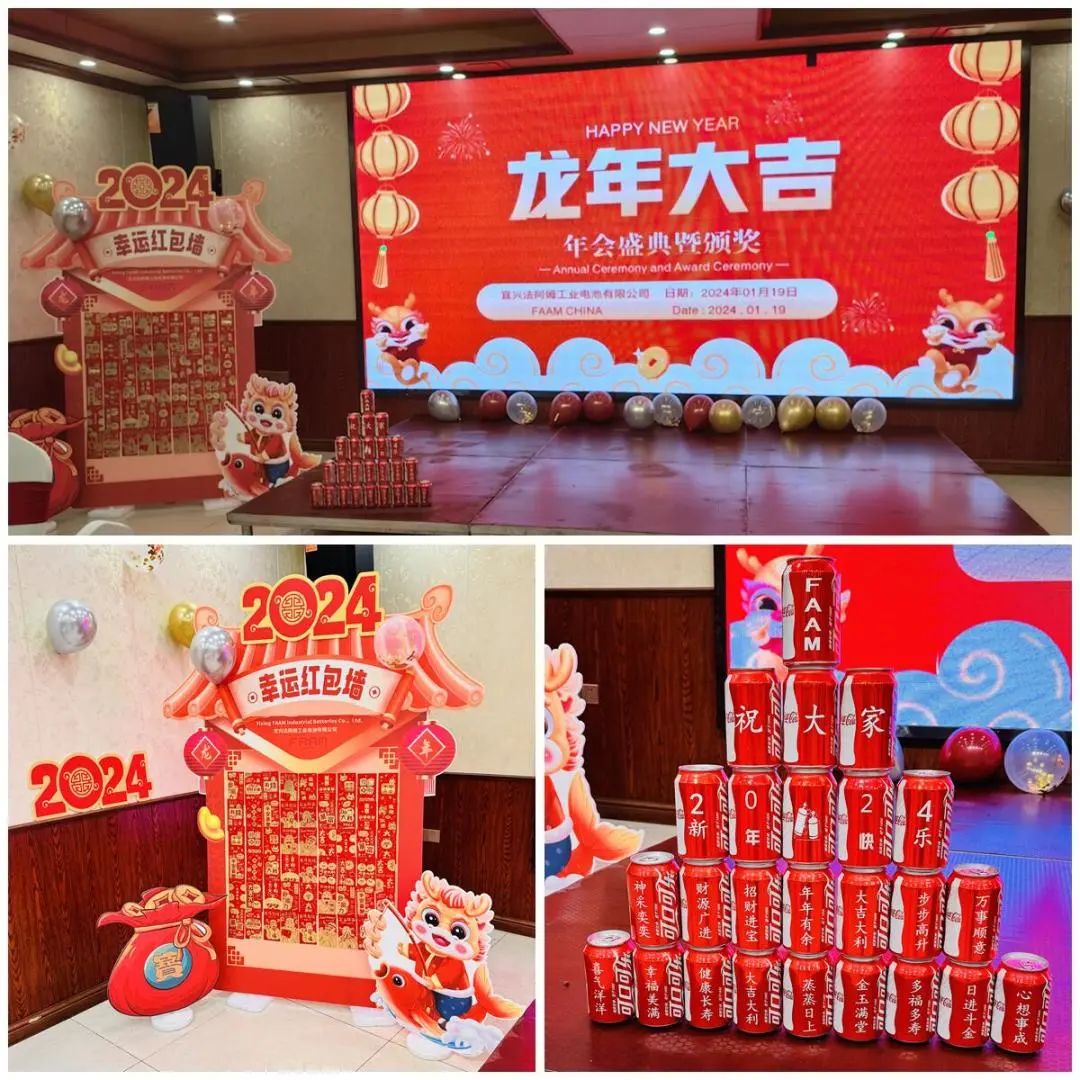 On the occasion of the grand opening of this annual event, Ermanno Vitali-General Manager of FAAM China, Mr.Xu-Lithium Manager、Mr. Wu-Financial Manager、Mr. Wang-Sales Manager, extended their cordial greetings and New Year wishesto all employees. Meanwhile, we also received greetings from SERI Group and the Head office in Italy. Federico-vice President of FAAM, also gave us the New Year wishes. In 2023, we unite as oneand strive to be the first. In 2024, let us continue to innovate and forge ahead.