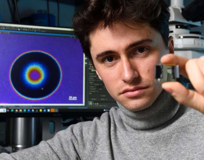 原创 2024-03-05 09:39 Mulan 来源:AGV阿尔文-莫丁(Alvin Modin)在克里格艺术与科学学院实验室与液晶装置合影。图片来源:Will Kirk/约翰霍普金斯大学。