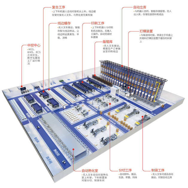 部署无人叉车,完成塑料卷膜从原料仓向印刷车间线边缓存区搬运;