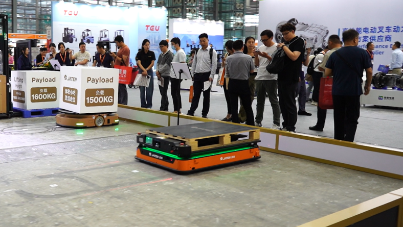 嘉腾机器人的展位前,该款潜伏式无人叉车LAF吸引了众多观众的关注,通过现场演示,观众见证了潜伏式无人叉车LAF在无需人工引导的情况下,准确识别货物并完成搬运作业的全过程。其出色的性能和灵活的操作赢得了业内人士的广泛赞誉。