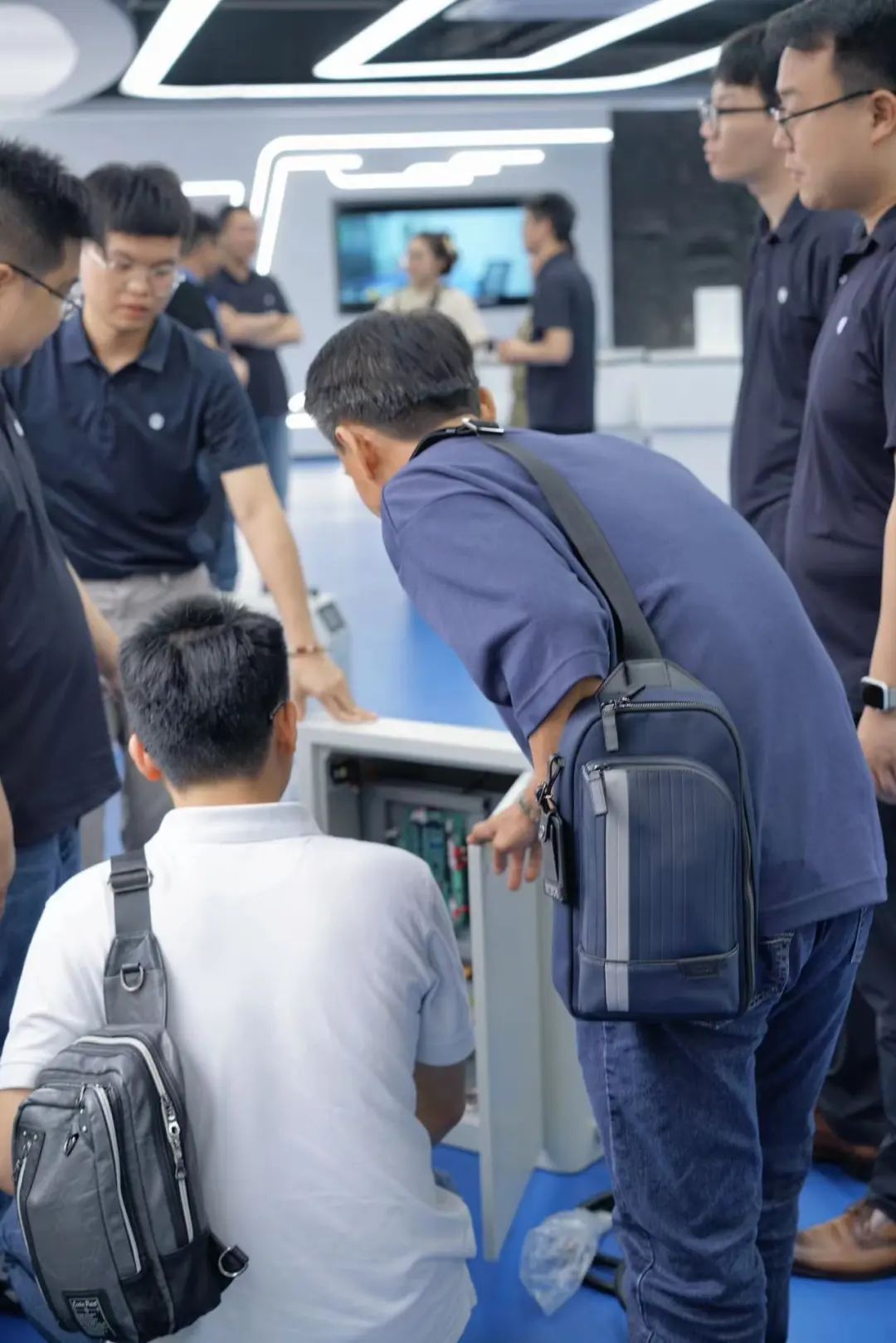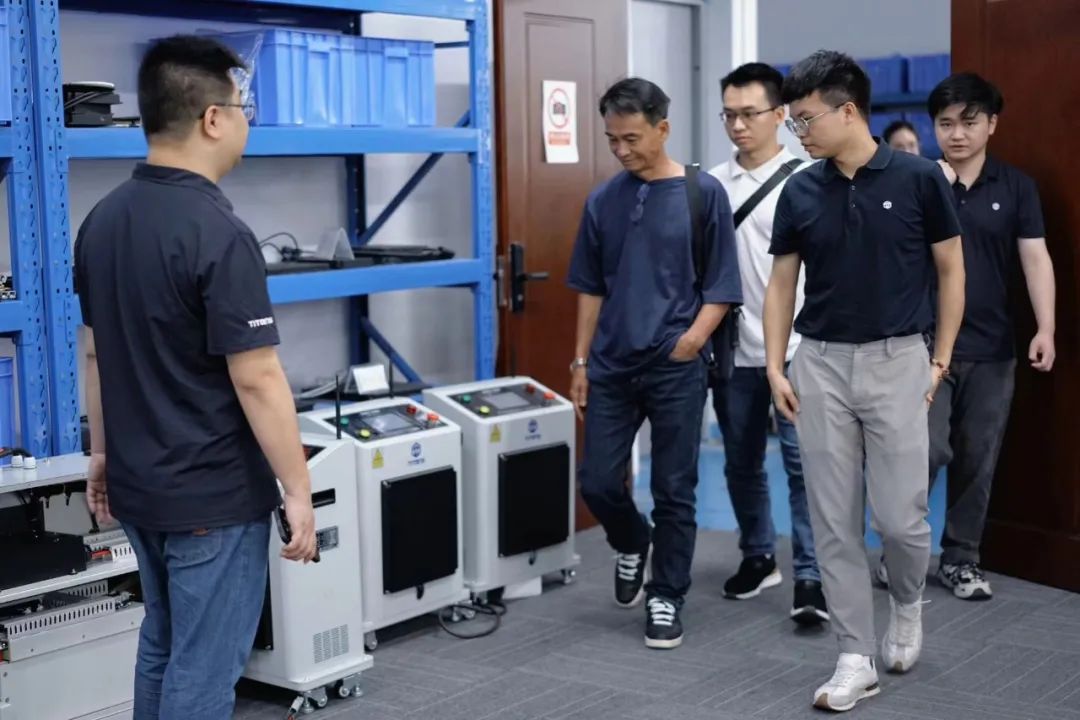 泰坦智能动力常务副总经理陈健斌带领客户参观了公司的研发中心,特别向他们展示了公司最新研发的新一代无线智能充电机。这一创新产品引起了客户浓厚的兴趣,并带给他们全新的使用体验。