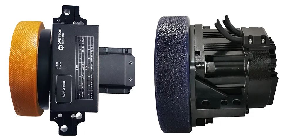 侧背式伺服轮驱模组的驱动器安装在电机的侧面,进一步缩短了整体机身长度,从而缩小了动力单元部分在车体内的占用空间,大幅度提升了机器人车体剩余空间利用率。外部只需电源和通信线缆,抗干扰性强,提高了移动机器人的运行稳定性和可靠性。