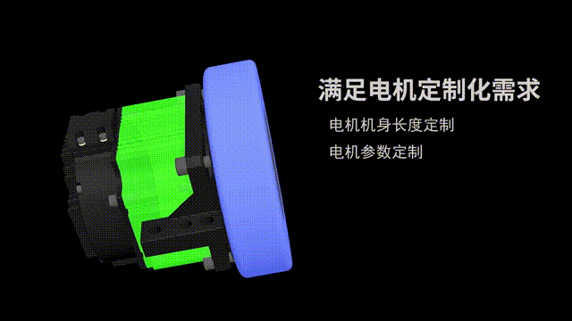 后背式伺服轮驱模组的驱动器安装在电机后面,电机采用超短机身设计,同时安装支架设计在轮边减速器上,大大减少了对电机的径向负载,延长了电机的使用寿命。