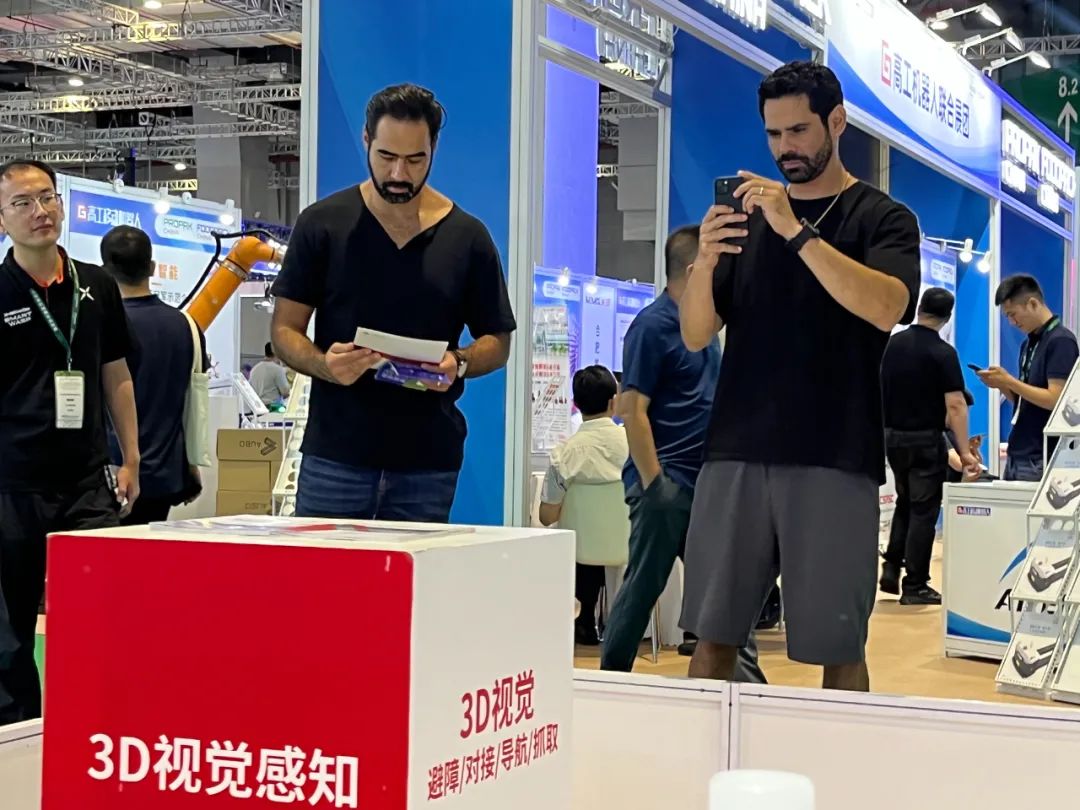 在展会现场,蓝芯科技3D视觉移动机器人3610L的动态演示吸引了众多参观者围观,来自日本、韩国、马来西亚、尼泊尔、西班牙、德国、俄罗斯的观众纷纷向工作人员询问产品功能和技术参数。